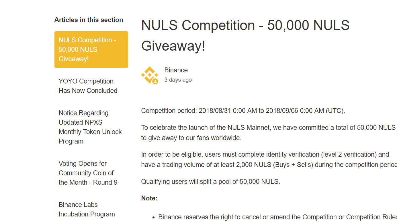 Binance; NULS Competition - 50,000 NULS Giveaway!