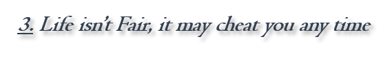It is rightly said that Life isn't fair to everybody, It may try to cheat you in every turn. Do your own dutyies but don't rest every thing on life and destiny, you may get hurt really bad if you make this mistake.