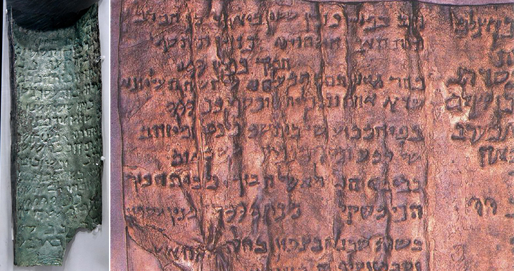 The Copper Scroll, which is one of the Dead Sea Scrolls, was found by an archaeologist in a cave in Qumran. The scroll elaborately lists 64 locations out of which 63 are said to have items of gold and silver buried or hidden. Several expeditions led by treasure hunters have unearthed nothing so far.
