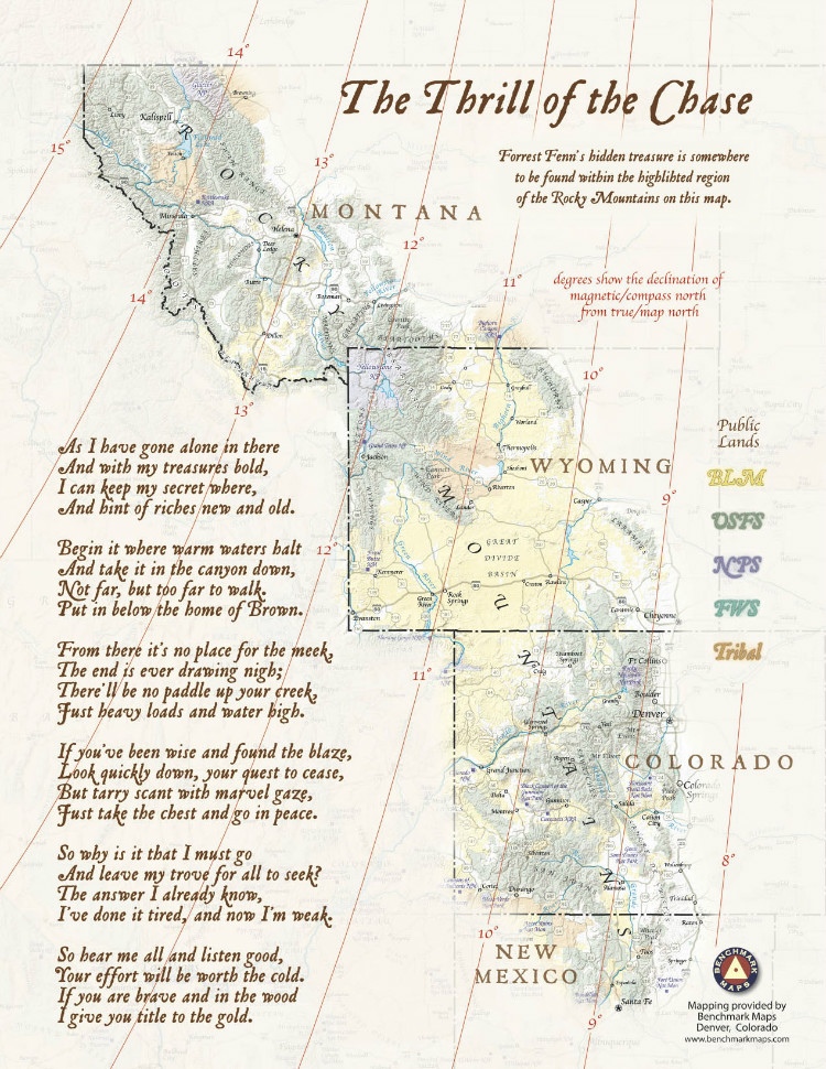 A millionaire has hidden 2 million dollars worth of treasure in 2010 somewhere in the Rocky Mountains. Four people have died trying to find the treasure out of the 350,000 who have attempted. The clue for the treasure is hidden in a cryptic poem that he wrote himself.