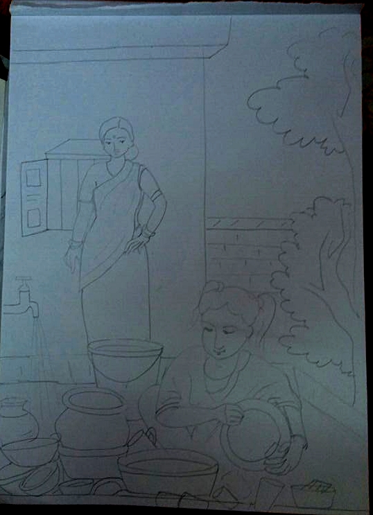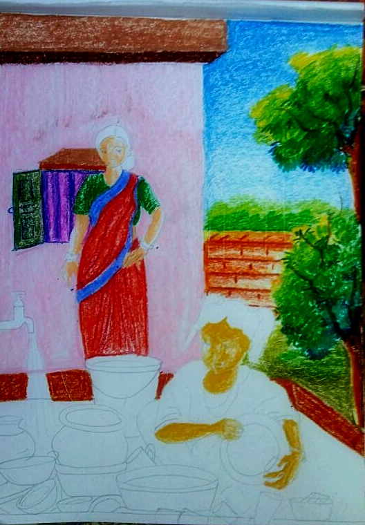 Today i have drawn my 3RD Oil Pastel drawing. I want to show an under aged girl, who is washing dishes and working as a labor here in India. "Adopting/Hiring a Child as a labor is definitely a crime" - in my opinion.