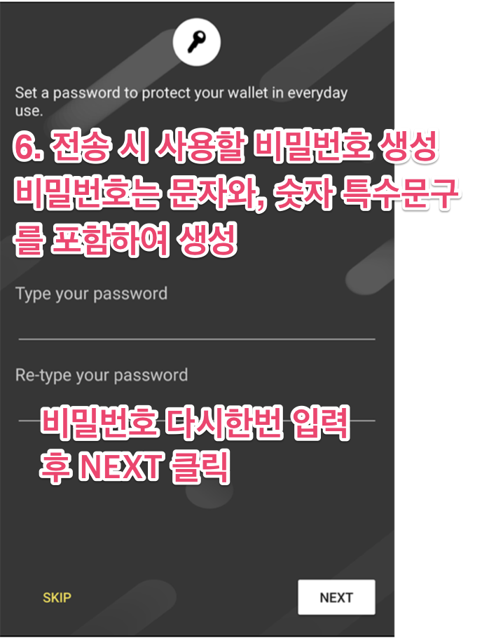 마이크로비트코인을 전송할 비밀번호를 생성합니다.