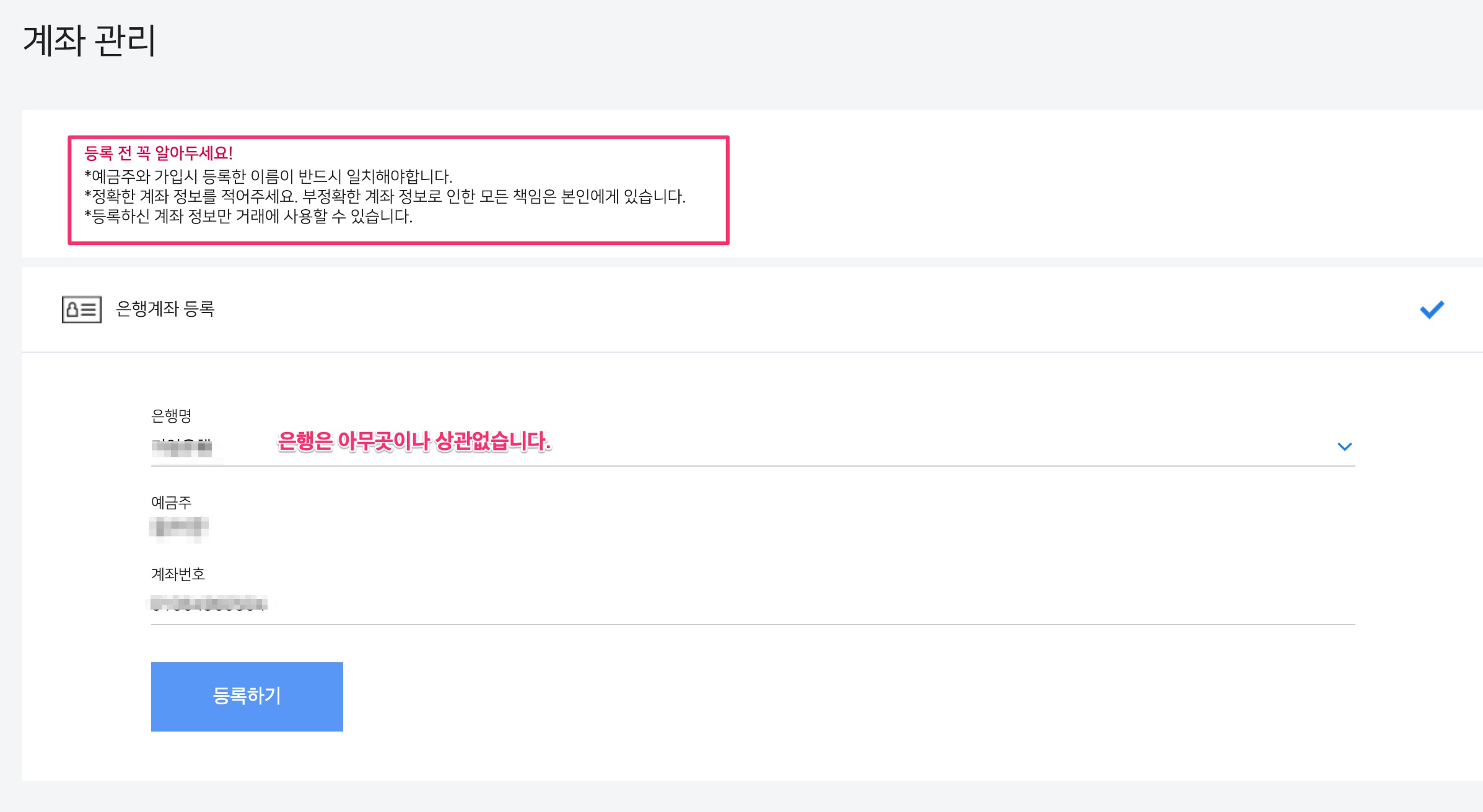 은행계좌는 어디든 상관 없는 것 같습니다.