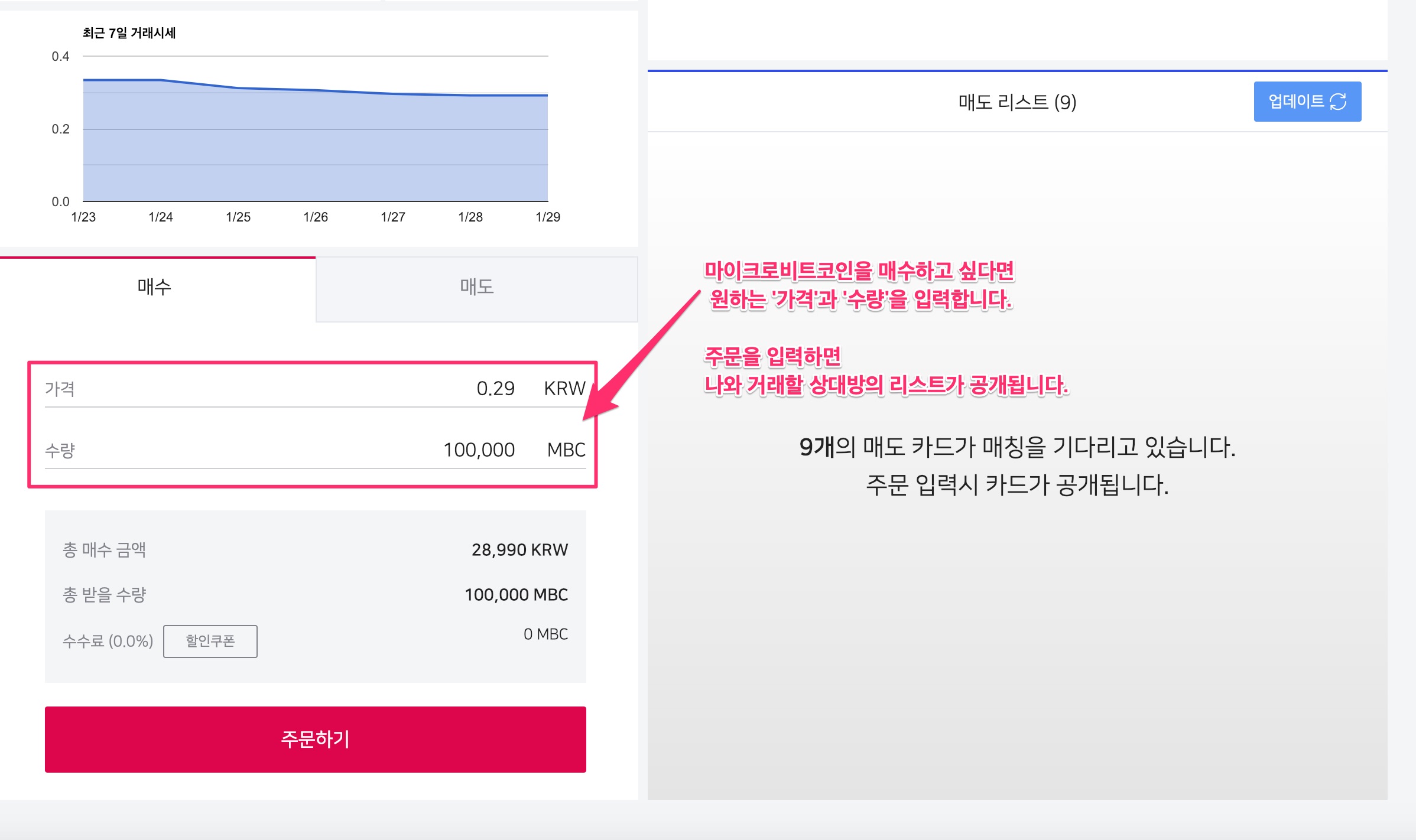 저는 0.3원에 150,000 MBC를 매도하려고 합니다.