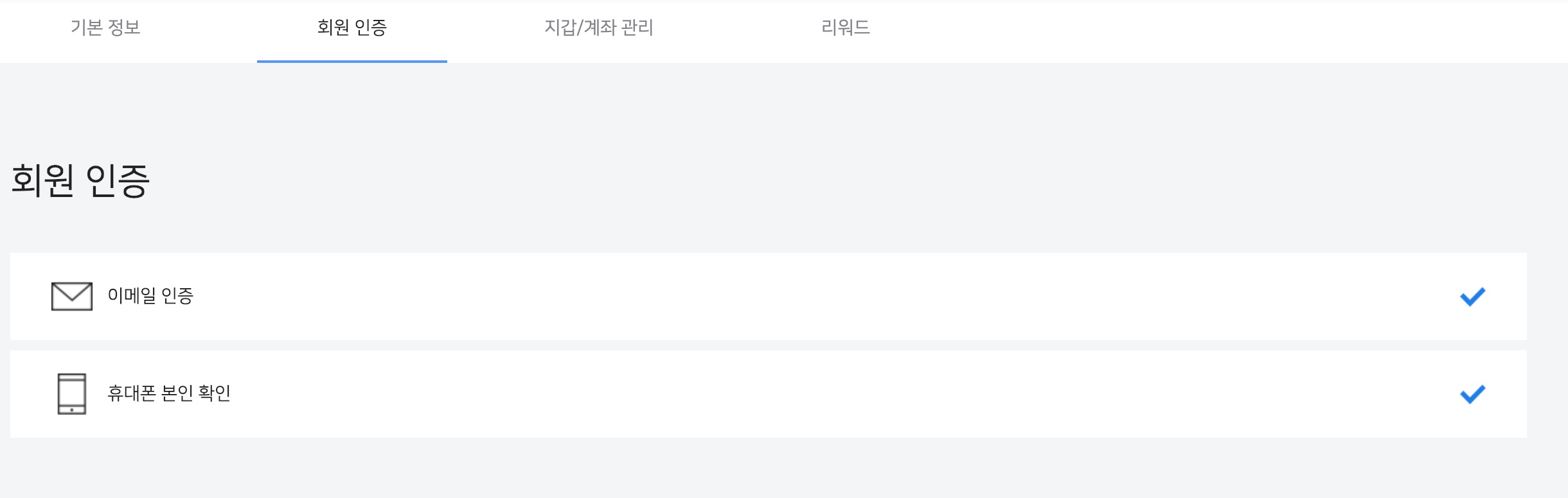 이메일 확인과 휴대폰 인증이 되었는지 확인합니다.