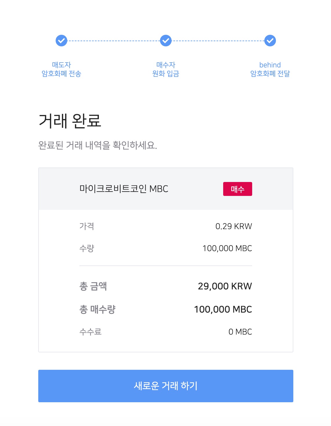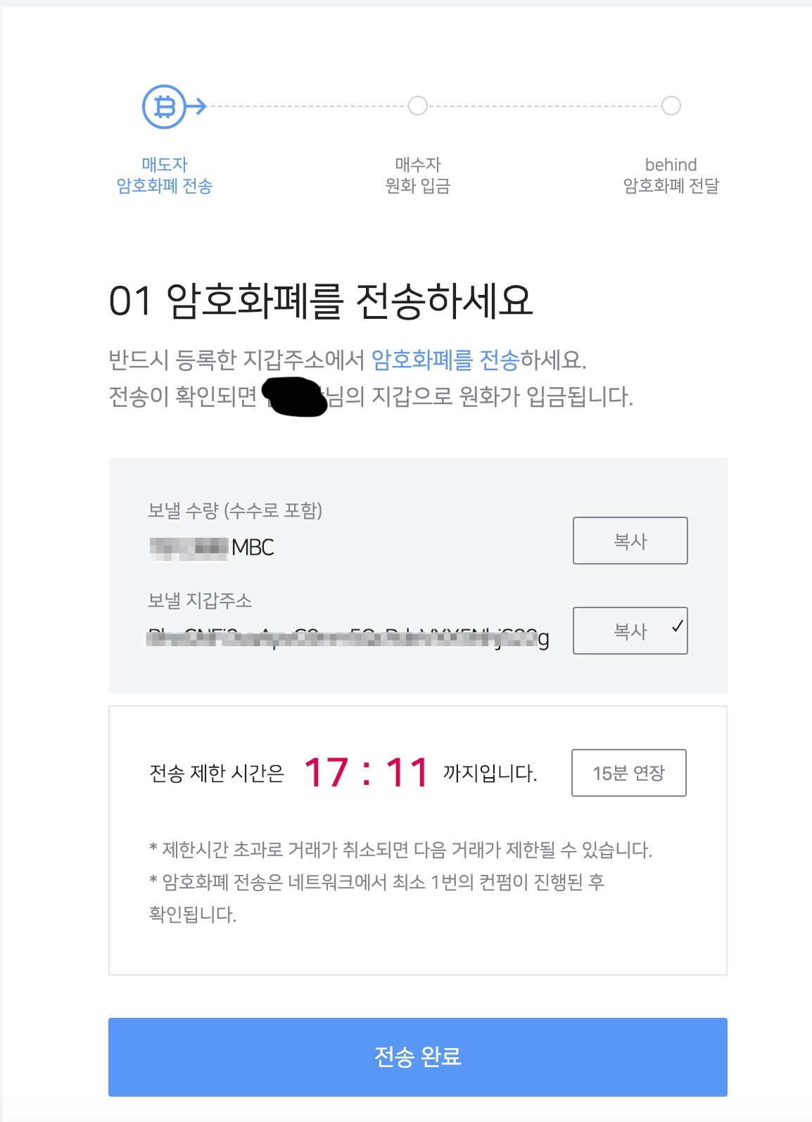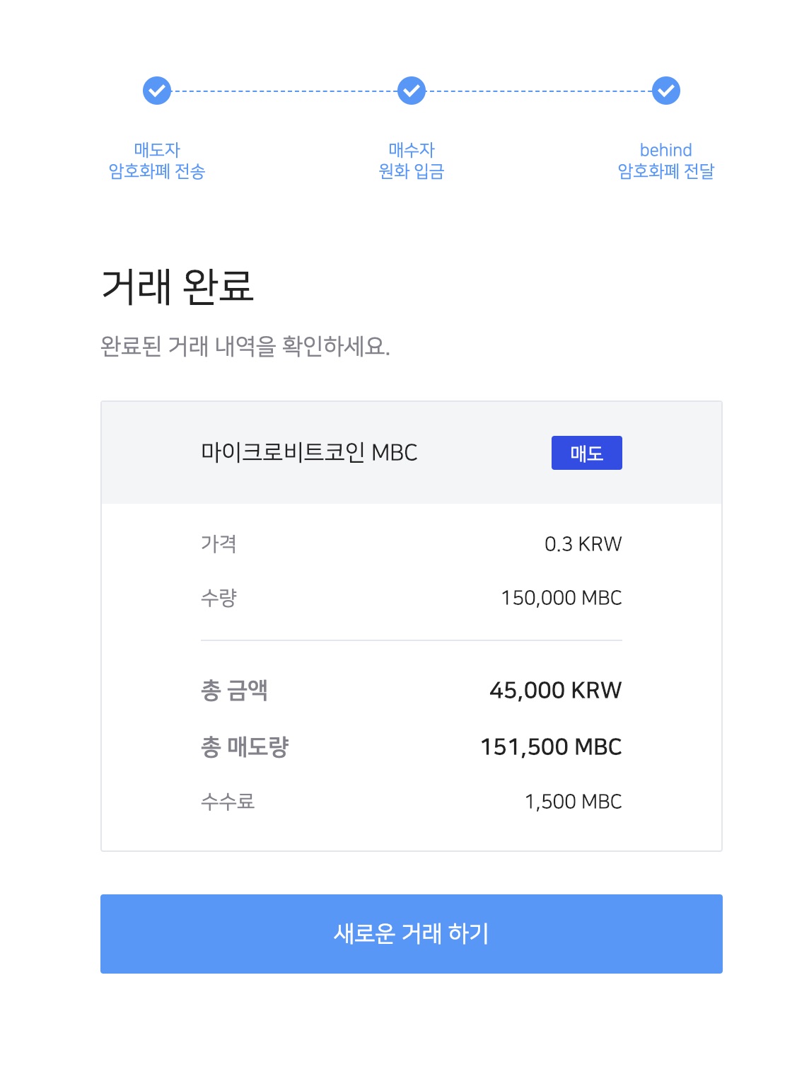 상대방에게 받은 원화입금을 확인하면 해당 거래는 성공적으로 완료됩니다.
