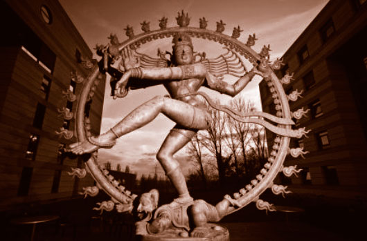 El acelerador de partículas perdió el control abriendo un agujero negro que crecía descontroladamente, emitiendo destellos que a su vez generaban nuevas explosiones a lo largo del túnel de veintisiete kilómetros en que estaba ubicado, y como reacción en cadena: El Big Bang de nuevo. Pero esta vez para detener el curso de la historia humana. Murieron millones, y otra vez los relojes se detuvieron por la fuerza de la explosión. Casi ningún sobreviviente, todo arrasado, vuelto añicos por los efectos radiactivos, excepto esa imponente estatua, a la entrada del laboratorio ahora en ruinas, la de la terrorífica diosa ancestral: Shiva, la destructora.