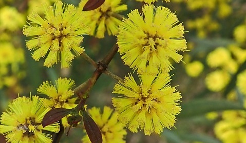 Next I put in a couple of filaments from a wattle flower. You can see the bulbous pollen heads on the ends.