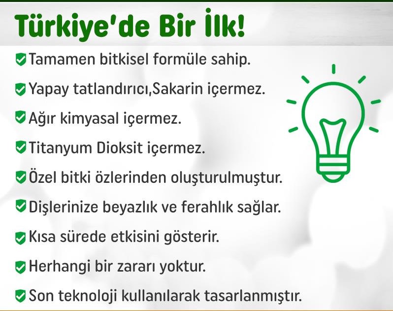 Doğal bir ürün olduğundan diş midesine zarar vermez, ağzı ve dişleri korur.