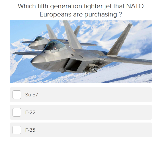Europe Air forceshk89 (30)in #military • 6 years ago Here are answers 1.F-35 2.Turkey 3.MiG-31 4.Ukraine 5.France #airforce