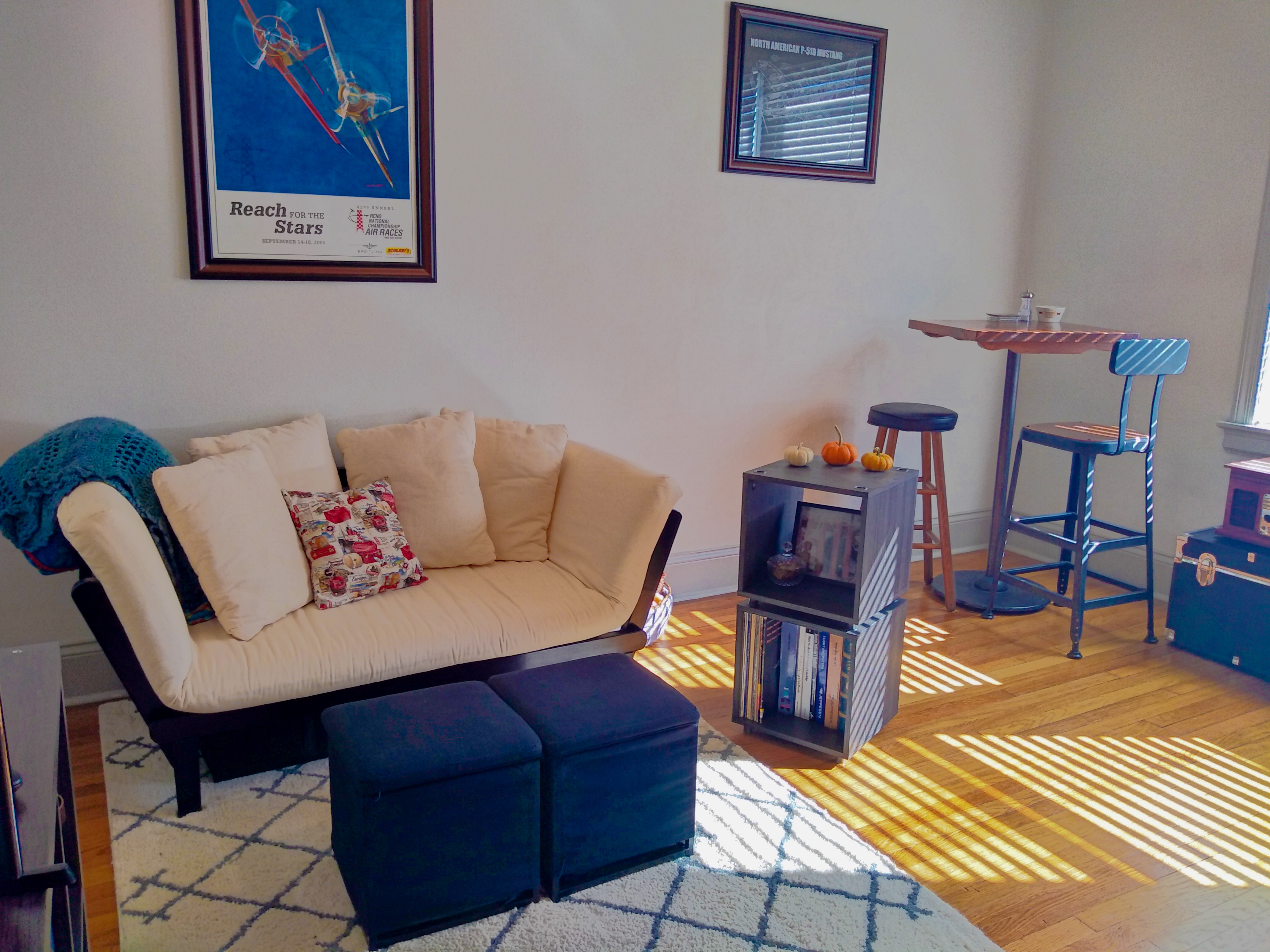 Together, we’ve determined that a studio is one room for our life; which is significantly different than having a living room, dining room, guest room, bedroom, bathroom, family room, kitchen, hallway, walk in closet, guest bathroom, office room, storage room, etc.