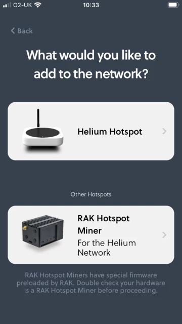 Then they will ask you what you want to add to the network. You got two possibilities here. First is the free Helium Hotspot, from Emrit.io, paying you between $20-50 per month, according to Reddit users. The second one, RAK hotspot miner, is used to provide more coverage mainly, and to mine Helium secondarily, and you need to pay $249 to pre-order it. It is meant to be used by companies providing services on the Helium network, but any individual can buy it also when will be available. In our case i selected the Helium Hotspot.