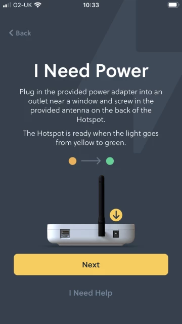 Then you need to use the power cable, and be sure that your device is ON. I must say that the app is easy to use, not over complicated, and if you follow the instructions, you will have your Hotspot set up in no time.
