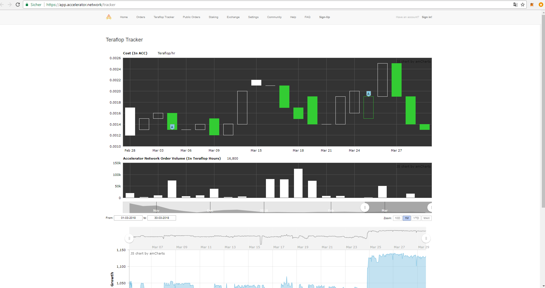 Accelerator Network is a physical mining facility in the USA, powered by renewable energy. The network itself is a data processing facility, and the prototype of the network has already been launched. Currently, the users of the network can mine few cryptocurrencies, including Ethereum and Monero. The plan is to increase the number of services available and to increase the size of Accelerator Network 10 times by the end of Q3 2018, in order to decrease wait time and lower per teraflop hour pricing.