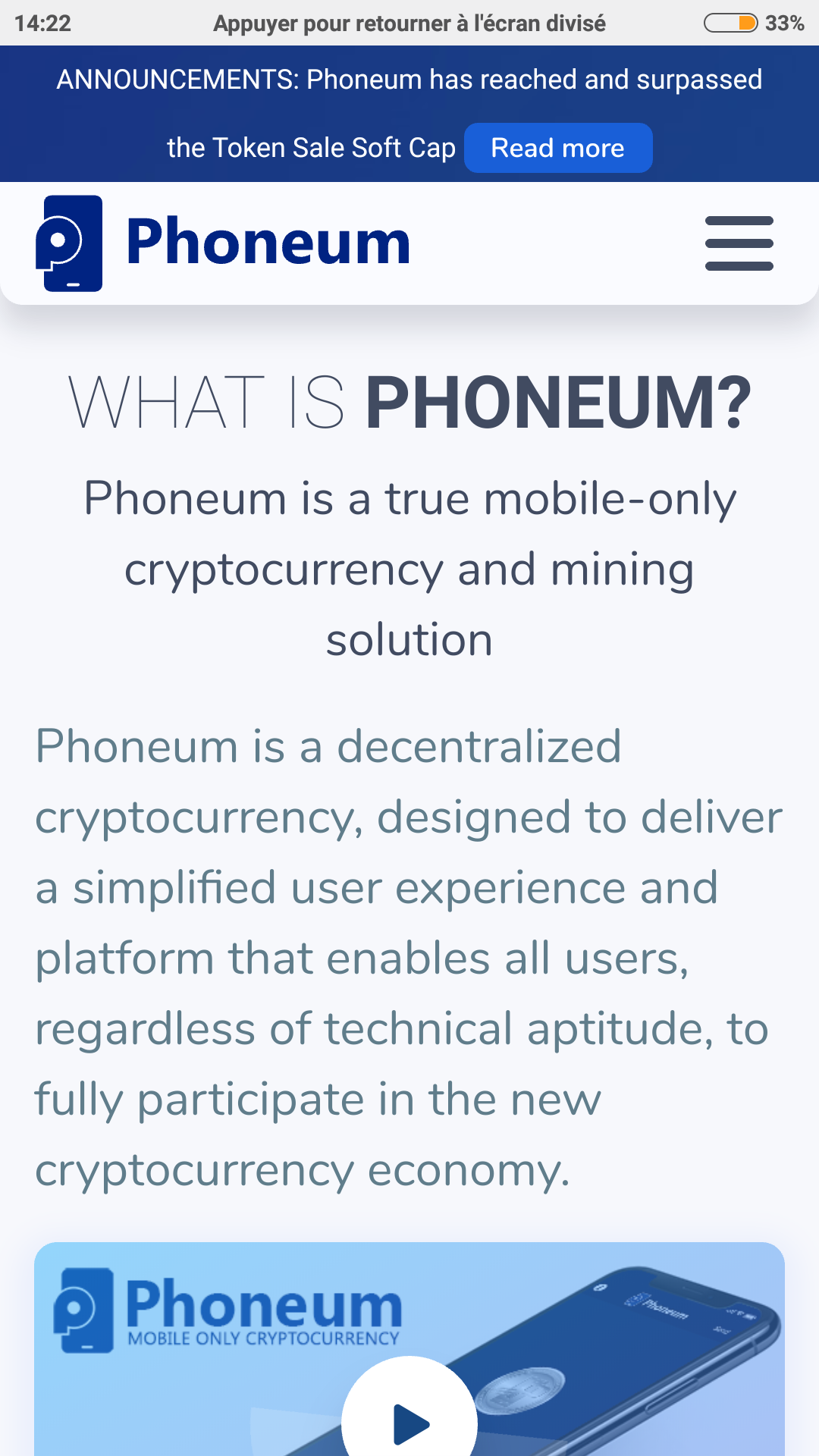 Phoneum is a decentralized cryptocurrency that only works on mobile devices! Let your smart mobile device do the mining for you!