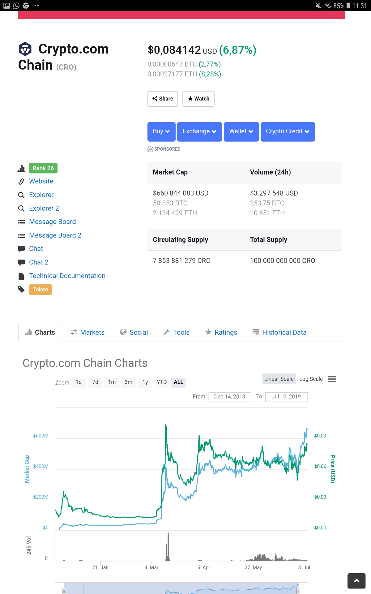 You can also invest in their 2 tokens listed (CMC) , CRO & MCO