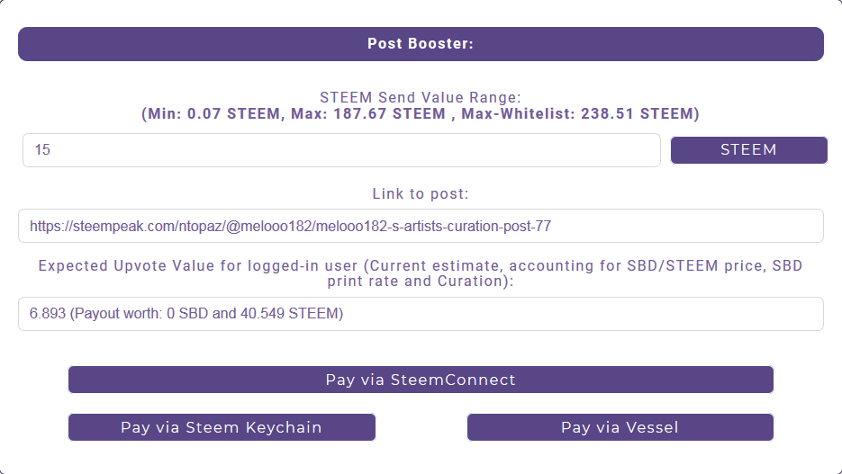 MinnowBooster ofrece (además de delegar directamente en el bot) la opción de vender tu voto. De esta manera, no tiene que delegar STEEM POWER, y todas las recompensas de la curaduría van directamente a usted, porque el voto viene de su cuenta, no de @minnowbooster.