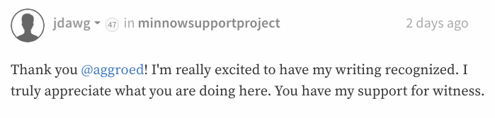 This account is getting large enough now that a resteem, an award, and an announcement about you can help you get the most followers you've picked up in a day and maybe the most SBD you've gotten in a day. Don't just leave a comment in the box with a post. Give a quick summary, ask for a vote, and then write a post about the content and ask your followers in bulk through that post to support you and be sure to ask folks privately through chat to support you.