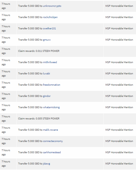 Gave out tons of Honorable Mention awards for 5 SBD each-