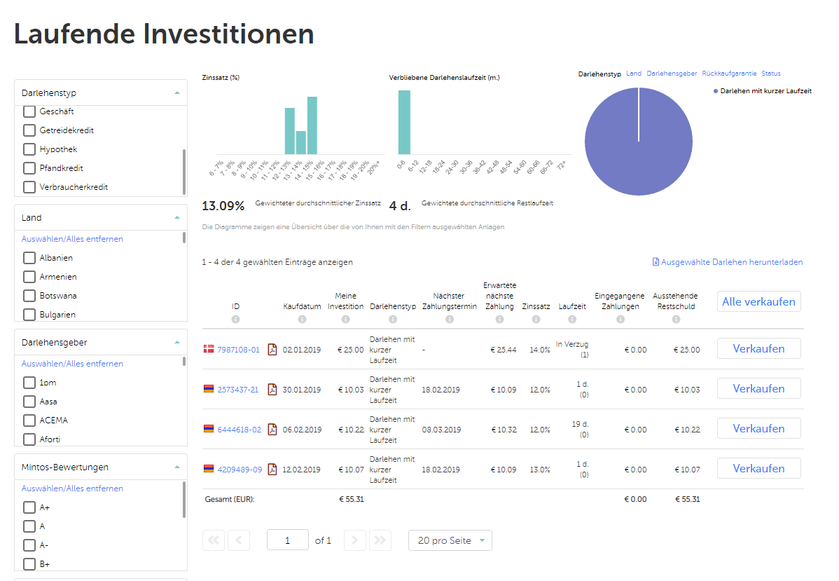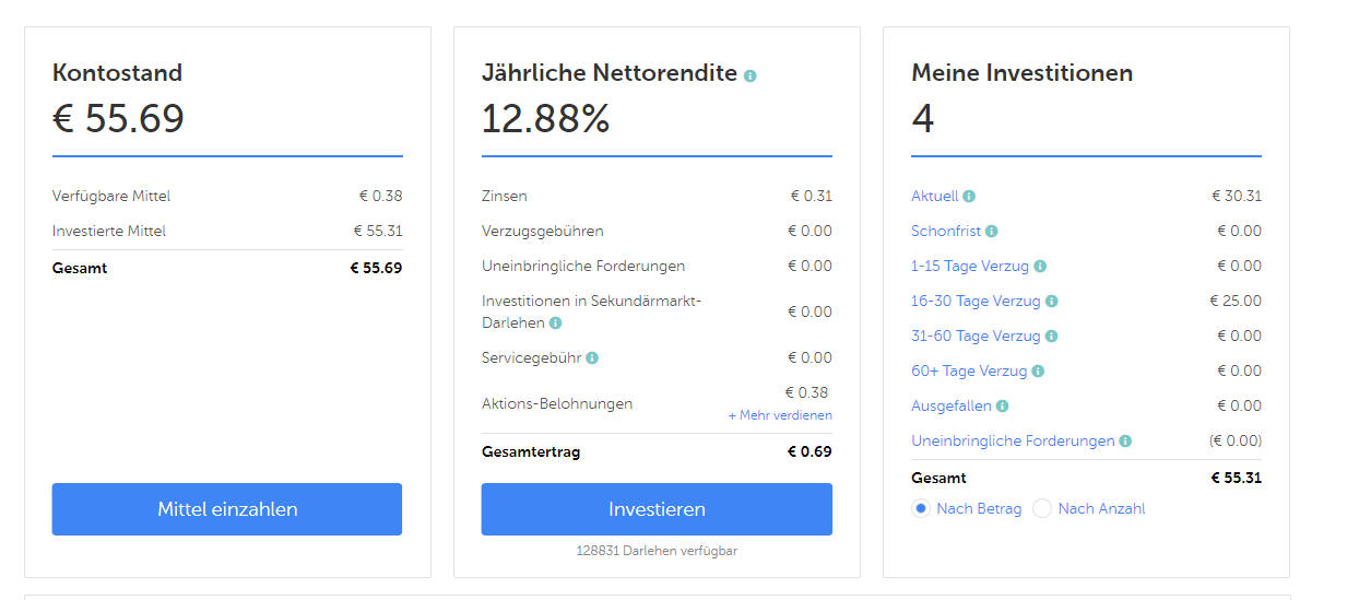 Es handelt sich hierbei nicht um eine Beratung, sondern um eine Einschätzung meinerseits, sowie einen Bericht über das von mir durchgeführte Verhalten. P2P-Kredite sind risikobehaftet und können einen Totalverlust zur Folge haben