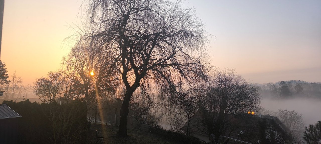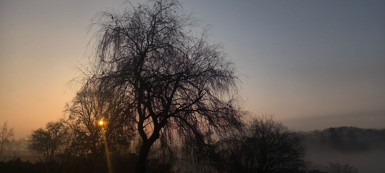 The silhouette the tree is creating against the sunlight is really beautiful and when I see the pictures now I nearly can't remember it was that beautiful today morning. The mist dissapeared very fast after only a few minutes when the sun started to gain more strength.