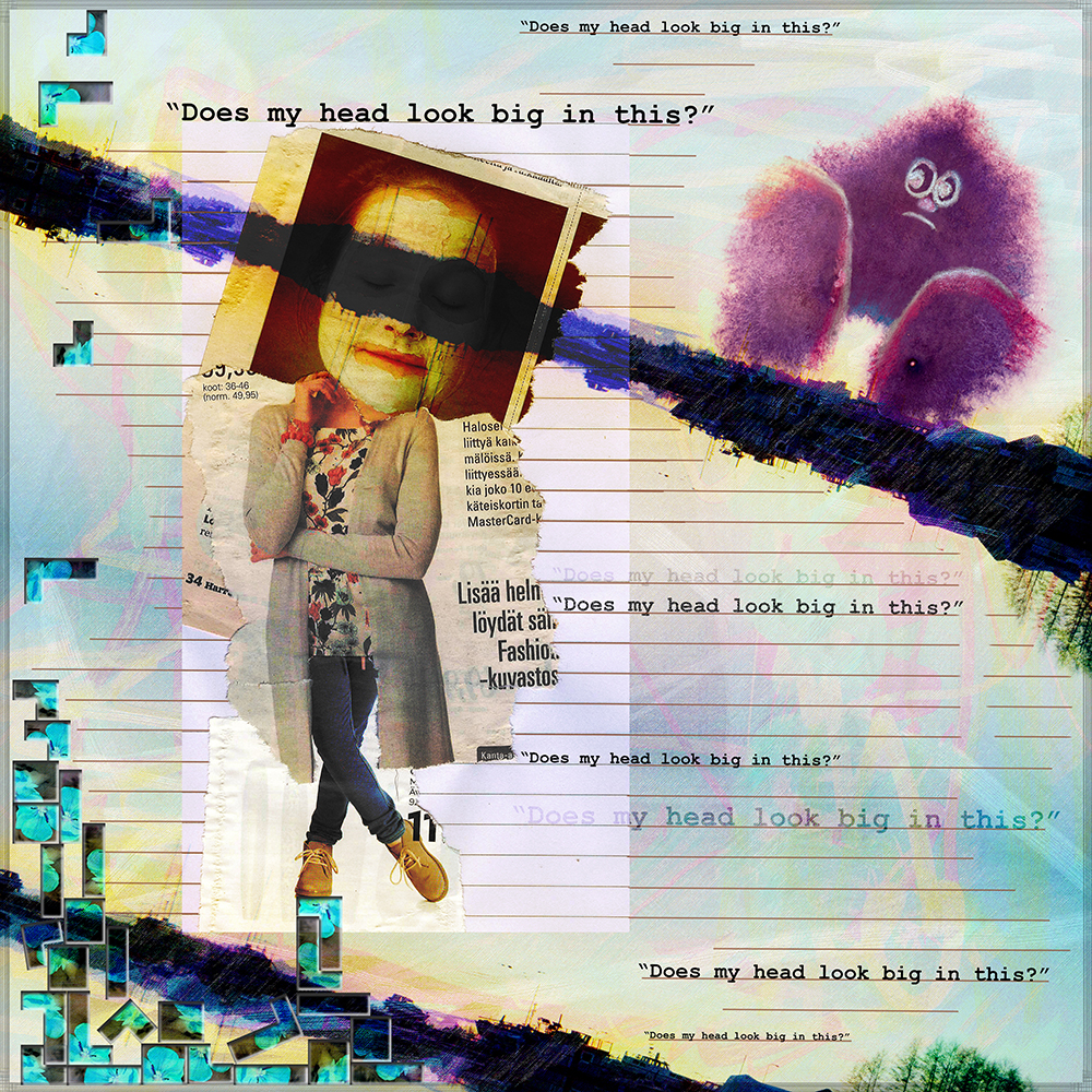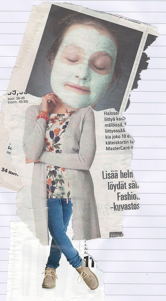 When my child was young, we played lots and lots of a board game called Mix-Max. The most fun part was not to collect the right bodies but to do weird combinations. I loved the game, but nowadays I have no-one to play it with. So perhaps because of that, lack of Mix-Max (I still have the game in my shelve) playing partners, I started to collect pictures of people from magazine ads and articles. Mix & match their bodies.