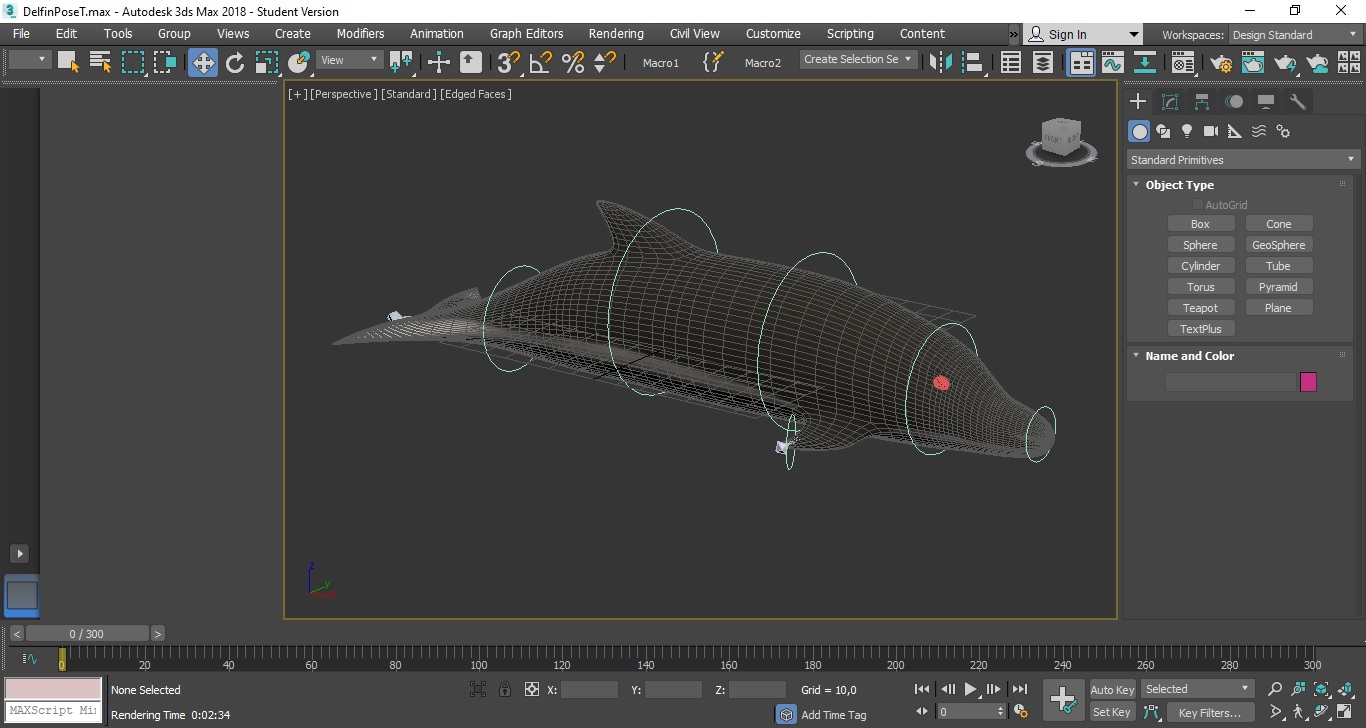 El primer proyecto que compartiré es un modelo de un delfín el cual, fue modelado en 3ds max, esta riggeado tambien en el mismo programa, con todos sus pesos distribuidos y con sus mandos listo para animar, al igual que esta texturizado en substance painter, uno de los software para texturizar mas avanzados y buenos en lo que respecta.