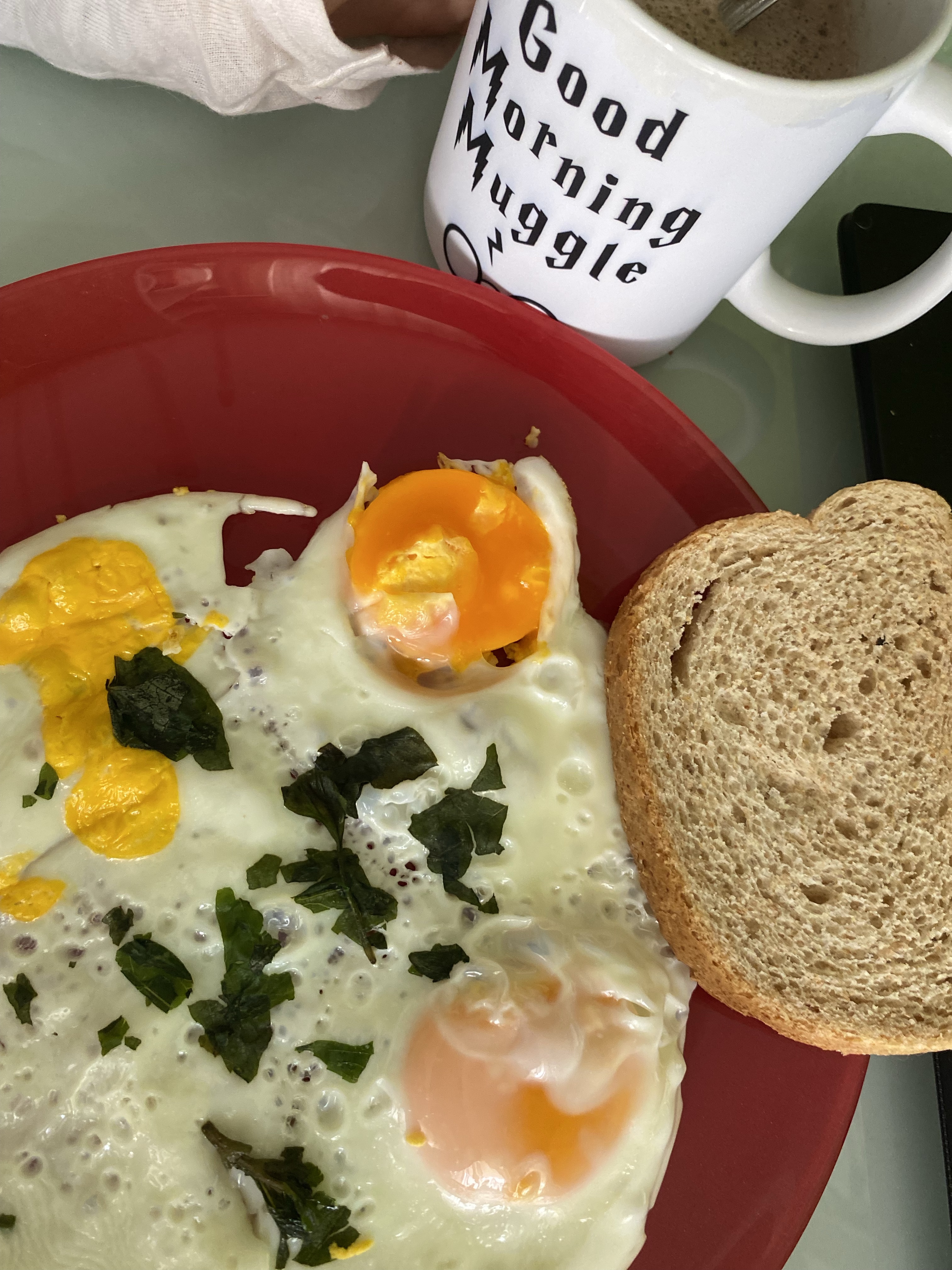 I hope you’re having a great weekend and that you are resting 😊Unfortunately I need to study all day but I did have that slow lazy morning with cup of coffee and proteins, fired eggs. I didn’t have bacon but I love bacon. My favorite breakfast is fried eggs and I raise the eggs that I’m eating. So I was always eating three eggs and now I’m eating 4 but not with the yellow thingy, I don’t know how it’s called in English, ha ha so I’m eating two yellow thingies and four white thingies