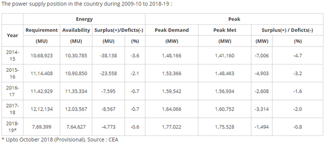 And, finally to the last point in Electricity to All (point c. above). Availability of power in the grid. It is for the first time in the history of the country that power is almost available on tap in the grid. Gone are the days when people had to suffer 15-16 hours of power cut (some places as high as 20 hrs plus-minus). Today this is no longer the case. The dark days of ‘no power’ are receding from the memory very fast. See the power availability data including the peak time power availability.