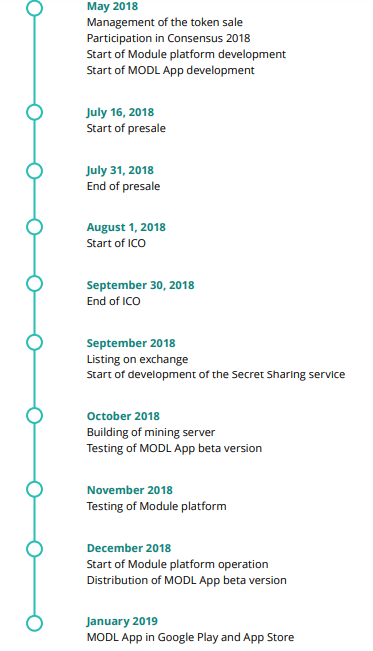 Внутреннее тестирование приложения MODLAPP начнется с октября 2018 года. Бета-версия будет распространена среди пользователей в декабре после завершения тестирования. Хотя бета-версия платформы будет выпущена на рынок в декабре этого года, приложение будет официально доступно в январе 2019 года. Экосистема проекта позволит людям создавать и публиковать свои собственные приложения на платформе.