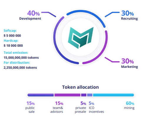 Значение платформы будет Module пропорционально количеству пользователей. Таким образом, одна из особенностей проекта заключается в том, что 1 владелец токена равен 1 пользователю MODL. Бета-версия приложения MODL будет распространена среди пользователей, которые приобрели токен MODL во время ICO. Чем больше активности в приложении, тем больше значение MODL должно быть распределено.
