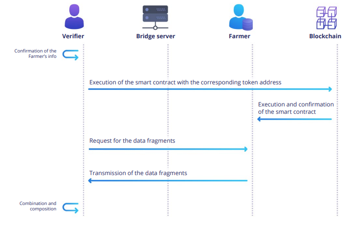 Пользователь загружает приложение и присоединяется в сети. Затем аутентификатор шифрует информацию. После шифрования с помощью ECC, информация делится на разделы. Каждый фрагмент данных копируется и помещается в другой репозиторий. Шифрование и дешифрование гарантируют высокий уровень защиты, и информация не теряется из-за того, что копируется в разные источники.
