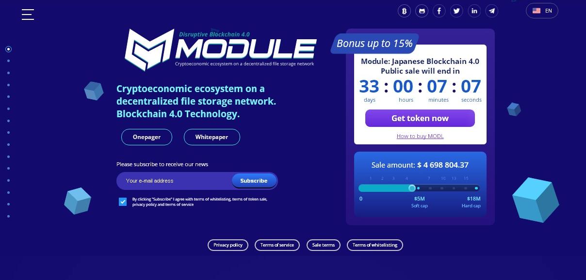 The crypto-currency project "MODULE" is a crypto-economic system that is built on a decentralized data storage network. At the same time the project "MODULE" took as a basis the technology of Japanese Blockchain 4.0.