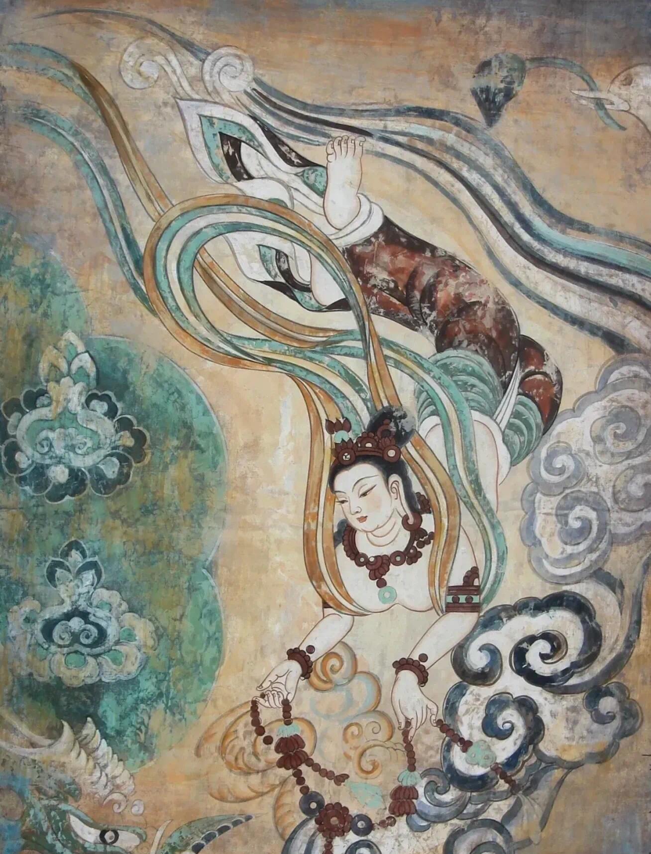 3⃣ 飞天壁画:你一定听说过“敦煌飞天”吧?这些飞舞在彩云中的仙女,轻盈灵动,展现了古人对自由与美的极致追求~