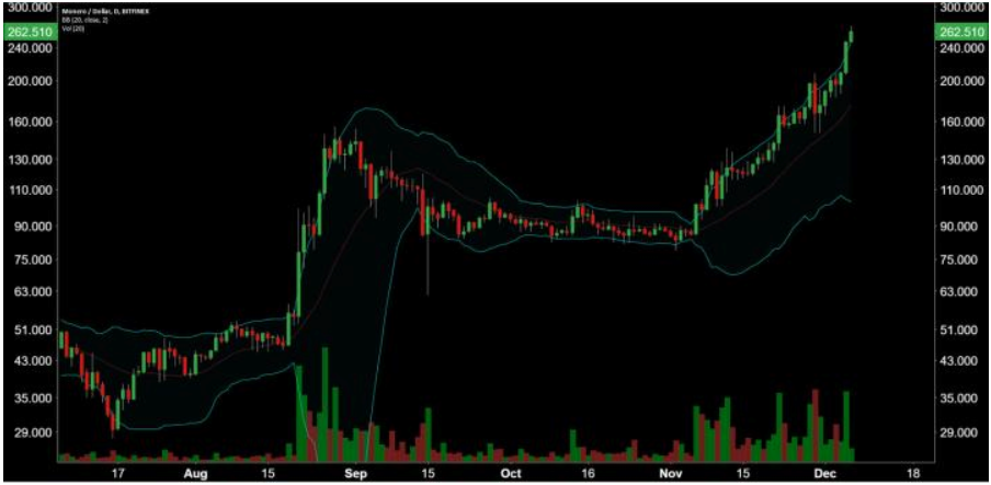 Monero (XMR) has been continually growing over the past month, and now holds a market cap of US $ 3.88 trillion with US $ 310.8 million in trading volume over the past 24 hours. The coin has risen 1600% since January of this year.