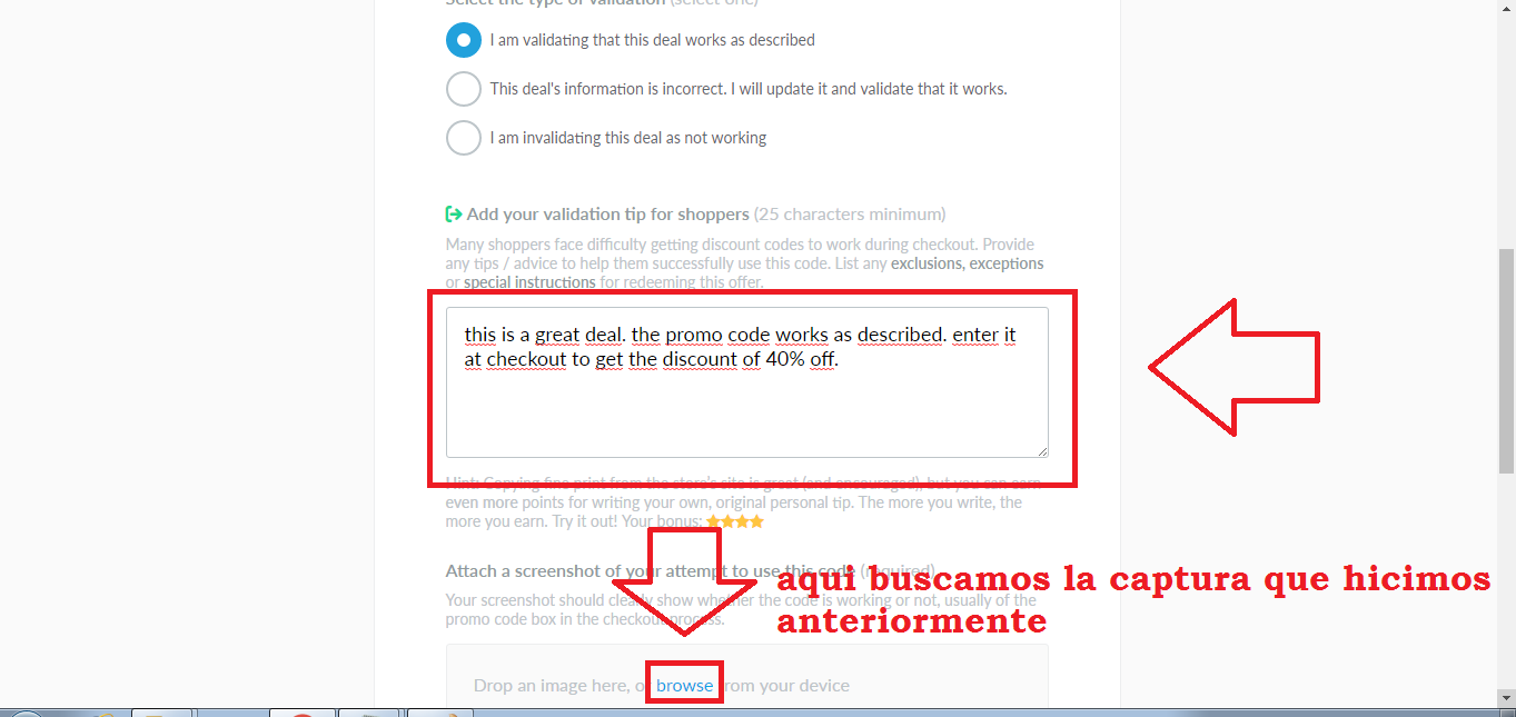 nos mandara a esta pagina donde tenemos la pagina en la cual realizaremos la verificación de la oferta y el codigo ,copiamos el código y vamos a la pagina (no cerrar la pagina actual).