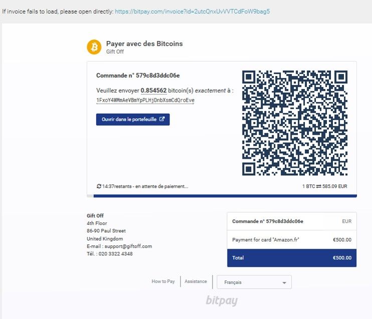 So after searching a little while on the net for a shop accepting bitcoins, delivering to France at a competitive rate or an alternative, I found that very interesting UK company GiftOff
