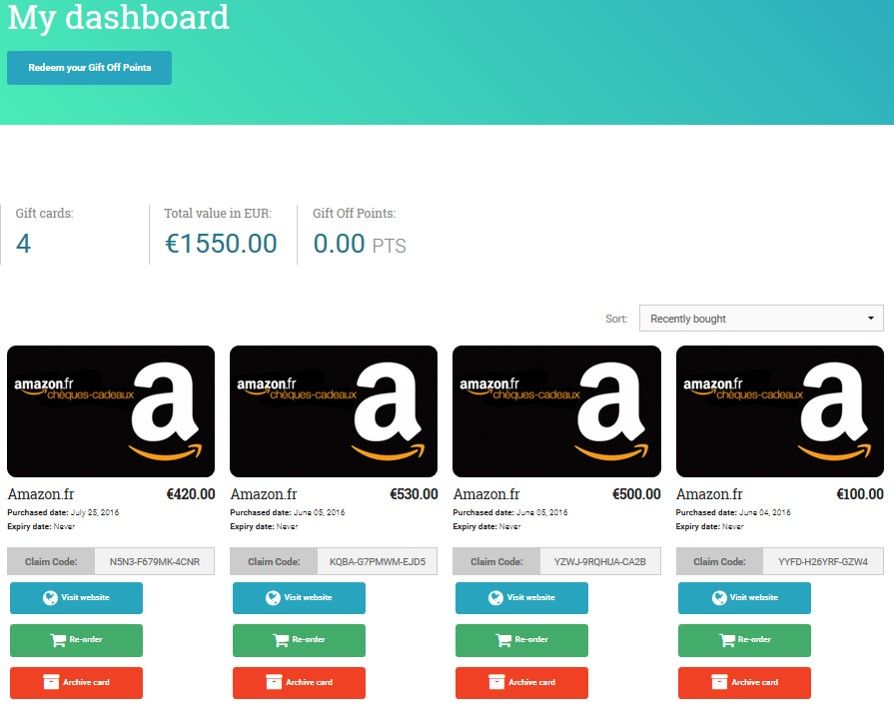 GitfOff allows you to purchase gift cards using a various choice of altcoins (36 different altcoins, I hope Steem dollars will be added soon ) from various online shop and most particularly Amazon gift card.