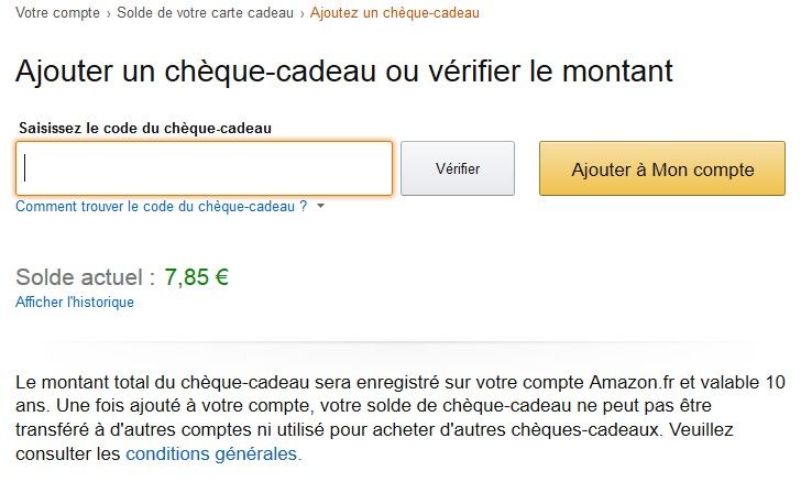 Now you will just need to copy and paste on amazon website (amazon france in this example) so you can credit your account and "voilà" you are ready to purchase whatever you like from Amazon :)