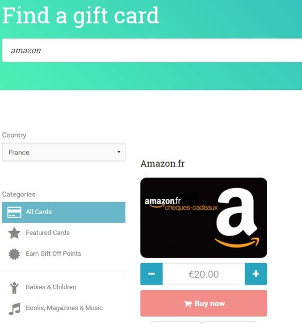 Then you can select your country (European country only for the moment) and proceed to the page to select the gift card you want to purchase:
