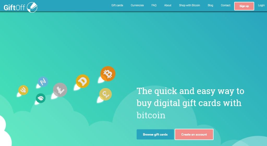 Here a screenshot of the currency page showing some of the currencies which are accepted. GiftOff use the ShapeShift exchange for the altcoin and BitPay for bitcoins