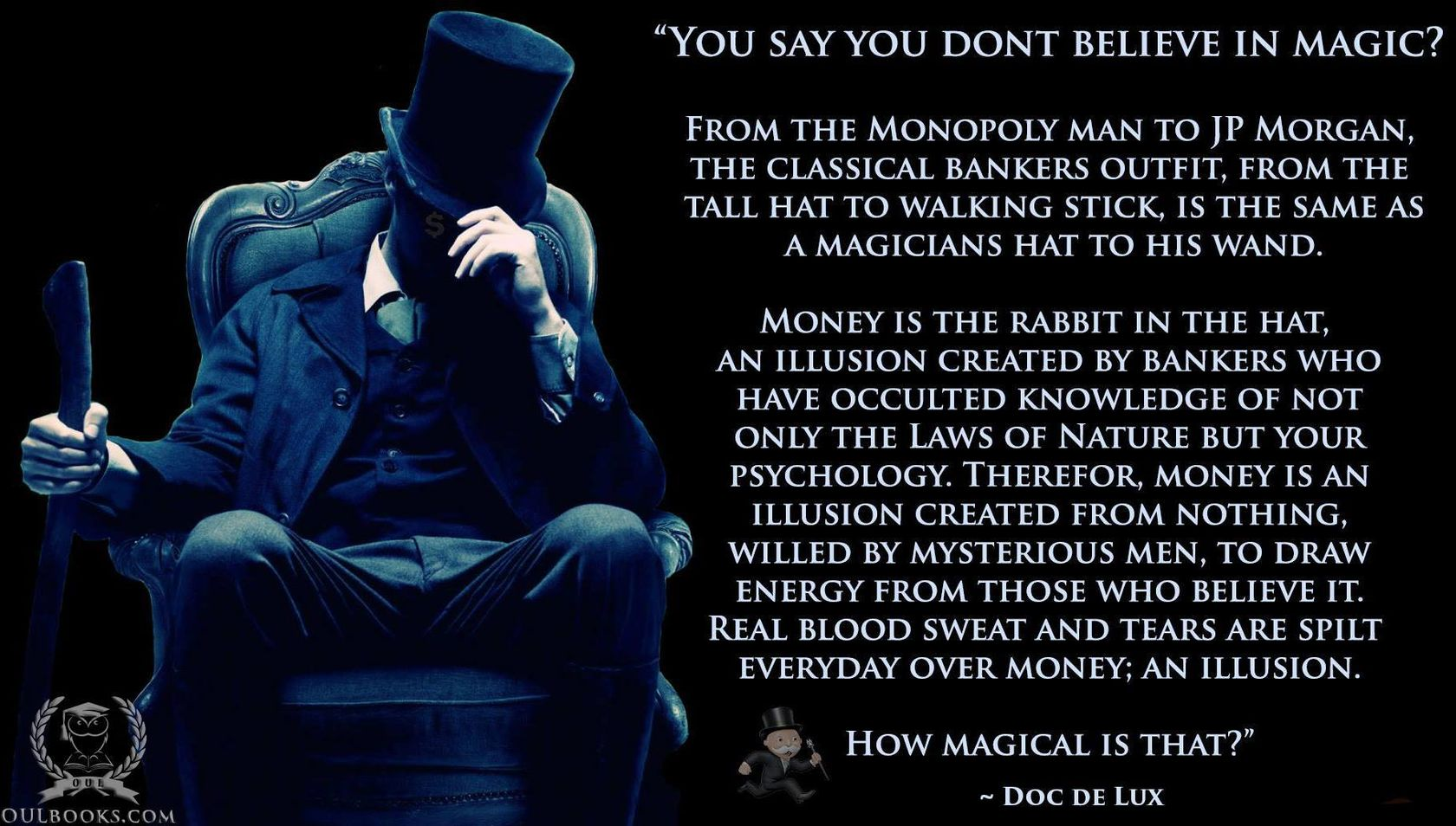 America, more than any other country in the world is under a spell. And this spell has been worked on us through the financial institutions. Money making is magic, lets not kid ourselves. The things people often do for it is horrendous.