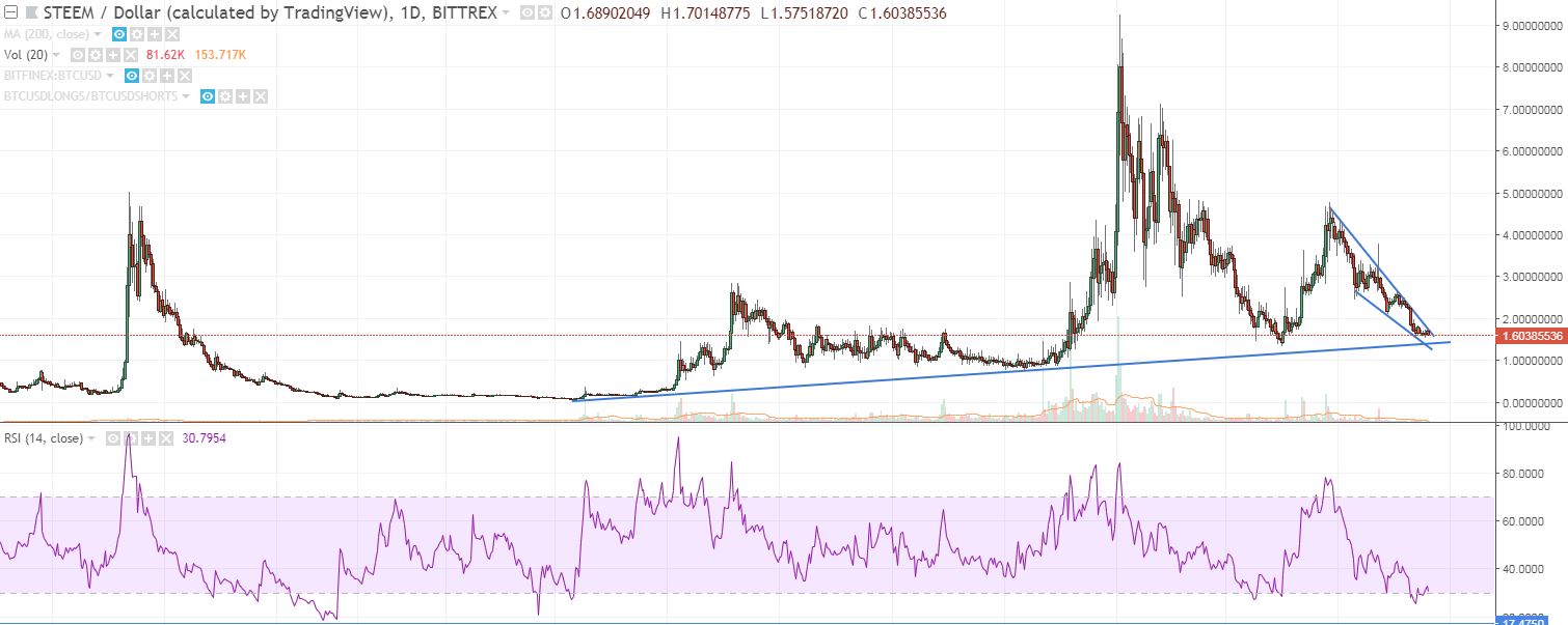 You know, wedges often tend to retrace 100%. The moves out of the wedge are not often explosive, sometimes they even wither and die, but unless a proper price collapse occurs here, chances are we'll visit the wedge top between around 4-5 sometimes in the medium-term future.