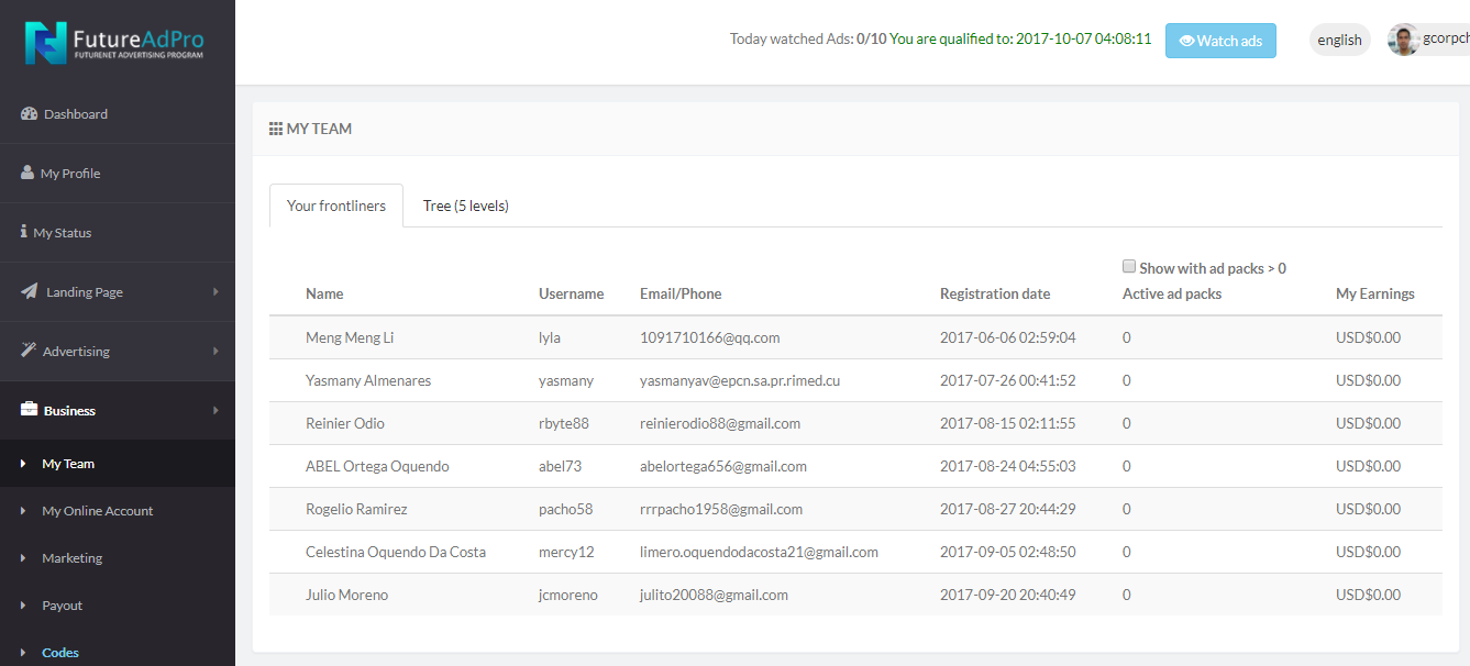No pienses que vas a enrriqueserte de la noche a la mannana porque no va a suceder, traza tu estrategia, y manten tu ritmo diario, recluta amigos que esos son realmente lo que te haráa ganar mas y mas. Saludos y espero te unas.
