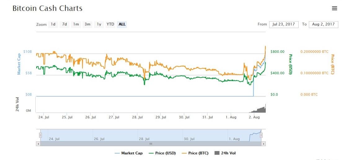 Bitcoin Cash ya esta aquí , nació ayer (día del fork) , la nueva moneda nace de una bifurcación de la blockchain de bitcoin, en medio de altas expectativas y tras la culminación de la etapa del SegWit, varios mineros empezaron con el primer bloque procesado el dia ayer a la 2 y 22pm .