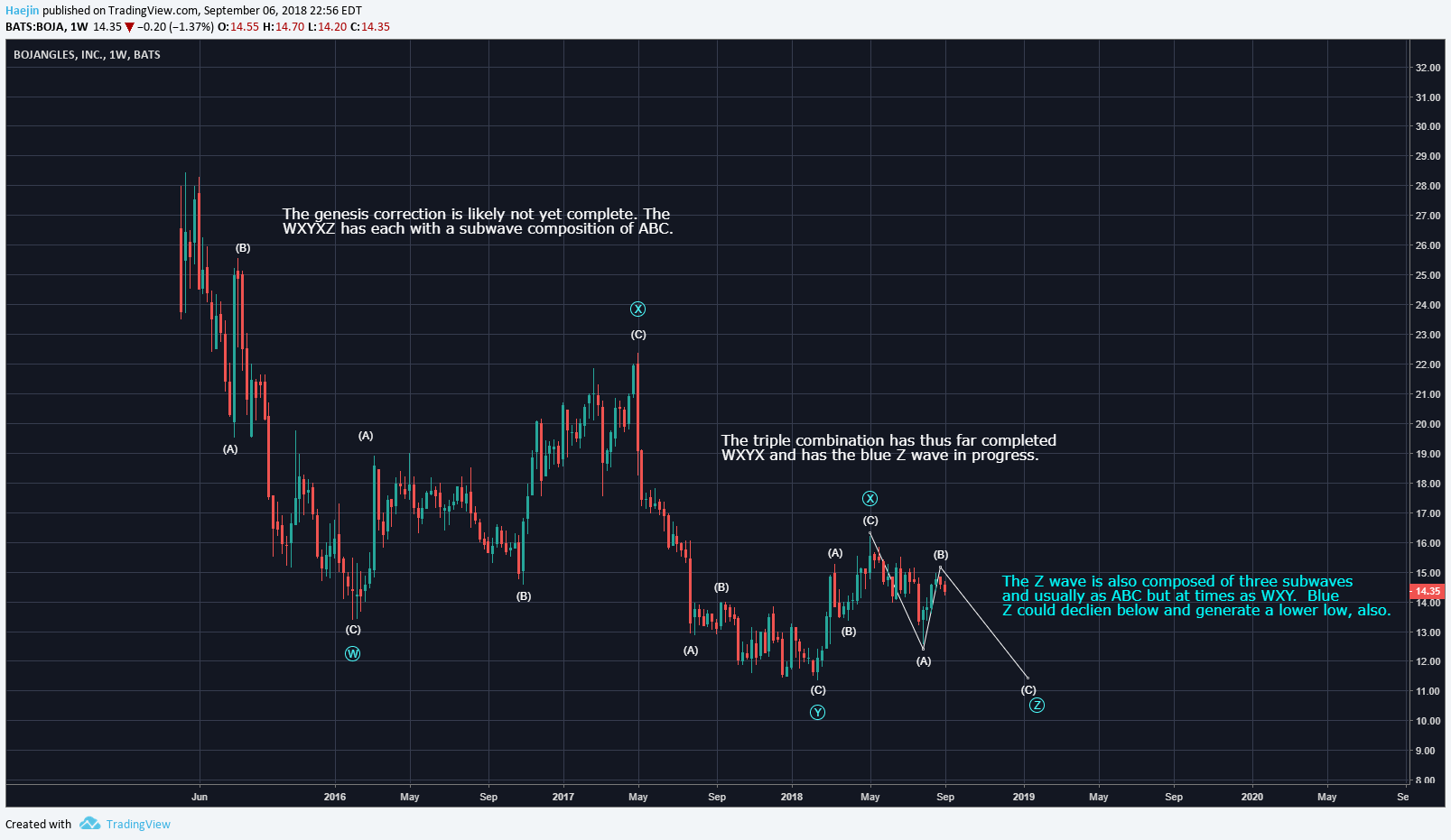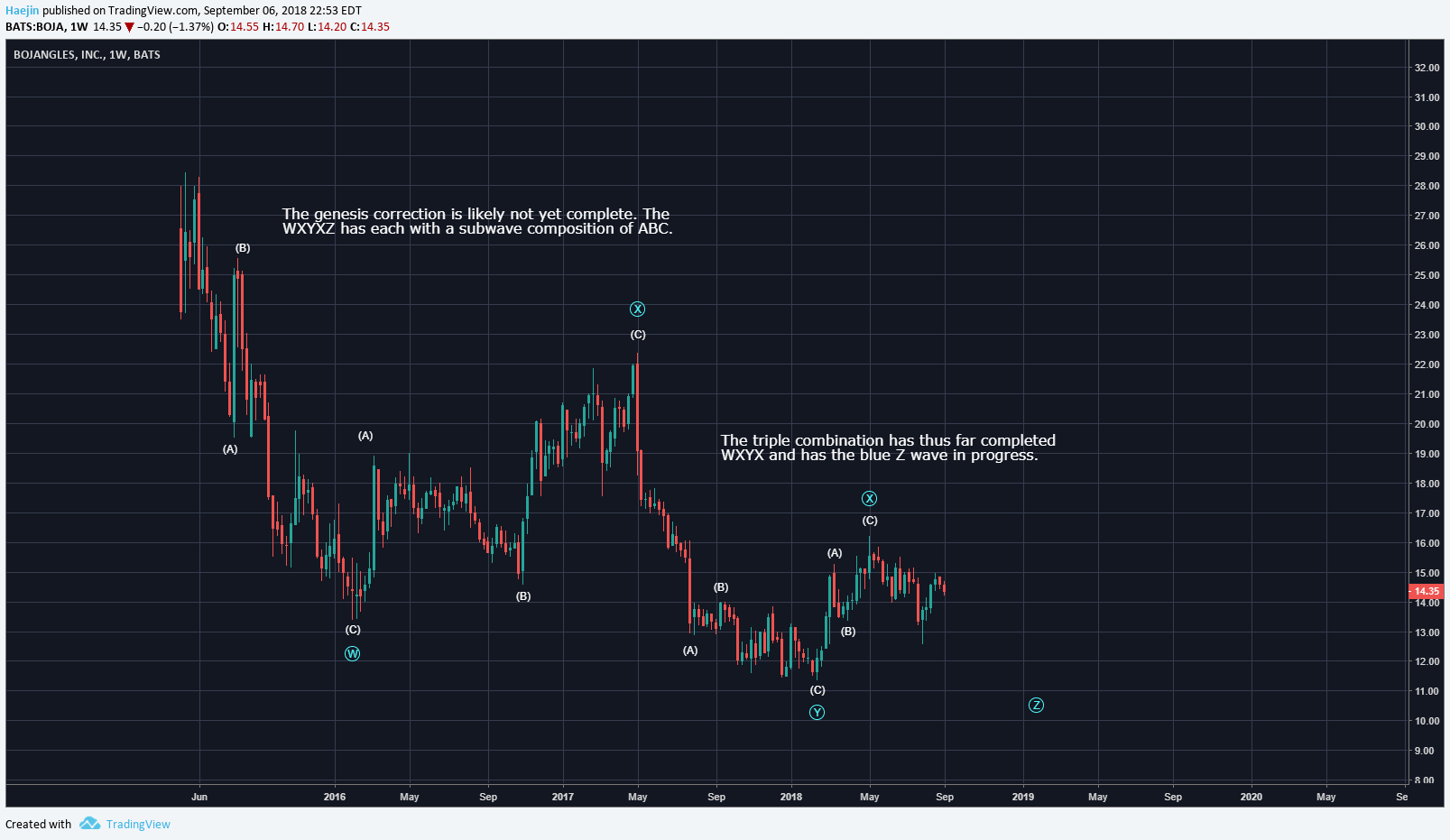 That's still in the play but as an alternate count. Since then price declining in a three wave sequence better fits the wxyxz triple combination.