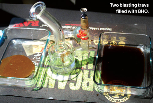 Another of Denver’s extraction experts is Daniel “Big D” de Sailles, a partner at Top Shelf Extracts, who isn’t quite as skeptical. “I’m a 100 percent proponent of BHO, because I’ve seen it make people’s pain just evaporate,” he states. “As medicine, it helps with both harm reduction – it practically cures withdrawal symptoms in people who are alcoholics or addicted to speed or pharmaceuticals – and pain management. It works every single time, and it’s easier to regulate your dosage. You take a fraction of a percent of a gram, and you’re fully medicated and exactly where you want to be.”