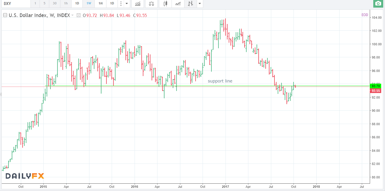 There has been a line of support at current levels. Until the most recent break, prices have turned immediately back upwards if they have ever been able to close below this line, mostly they have not been able to close below it. So another way to look at it (and we should always look to view the charts in a different way, including in a bullish way if we are bearish), is that prices broke support in July and August and have now retraced to retest the support line. Therefore, if prices fail at this level, we could see a strong continuation in the downtrend.