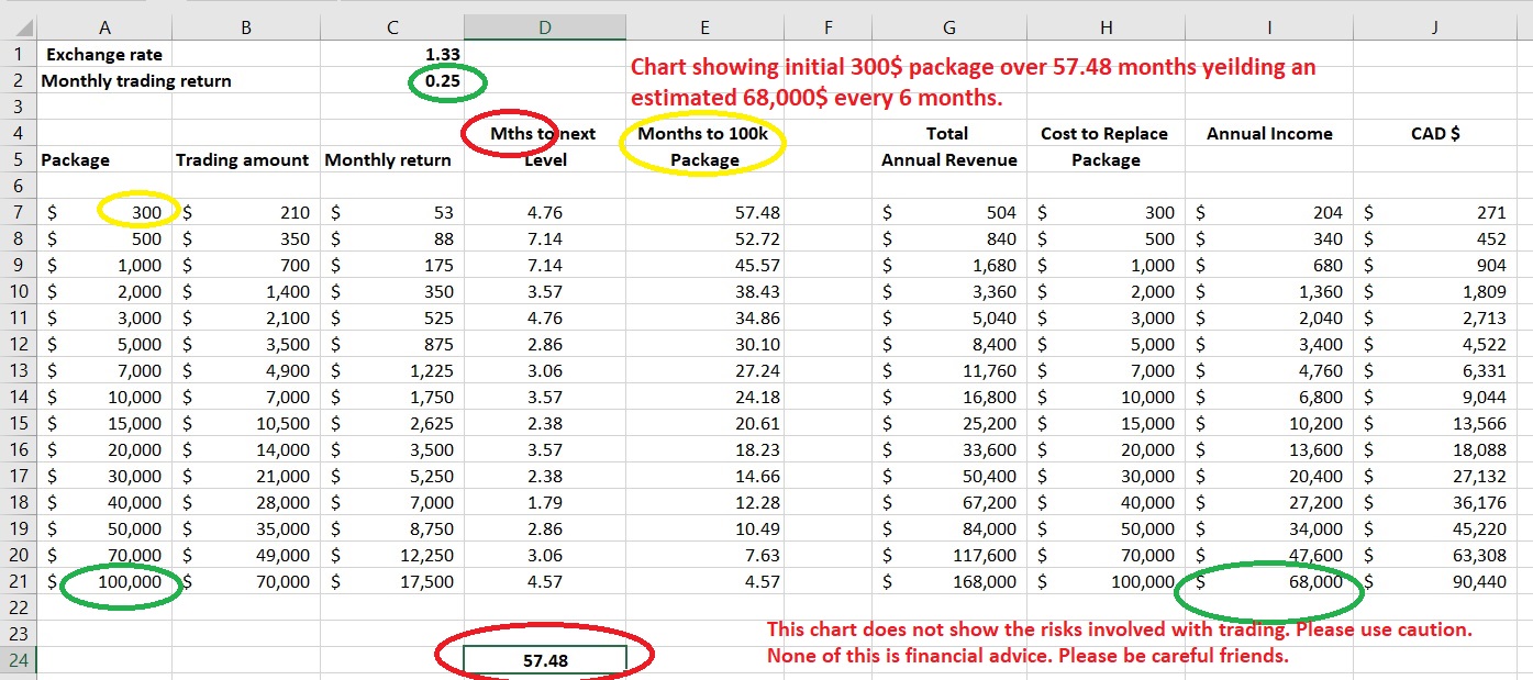 Here is one of the charts showing many outcomes over 57 months. Of course no guarantees and their are risks with trading. Additionally this is not financial advice.