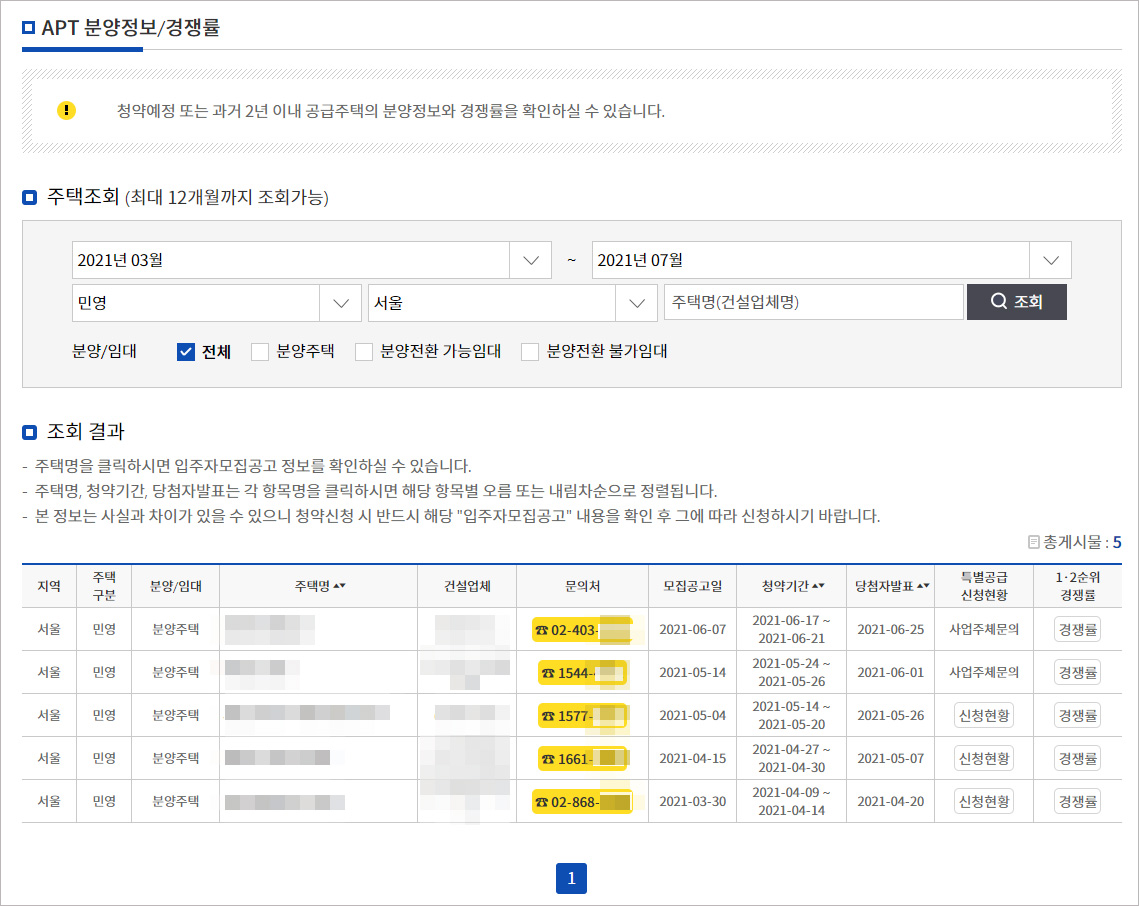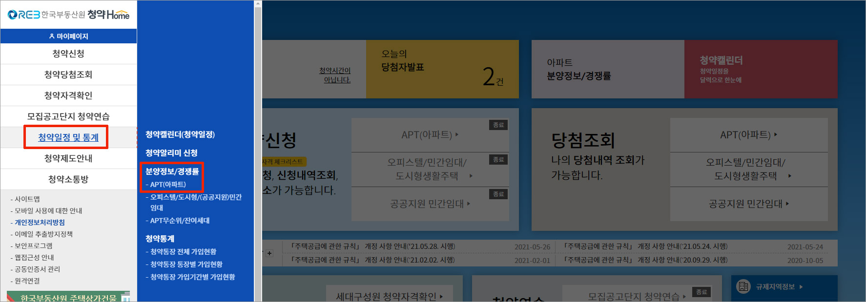 청약홈 (https://www.applyhome.co.kr/) > 왼쪽메뉴 청약일정 및 통계 > 분양정보/경쟁률 > APT
